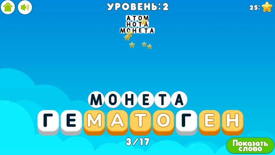 - 🎯 Цель — найти все возможные слова или набрать максимальное количество очков за уровень.