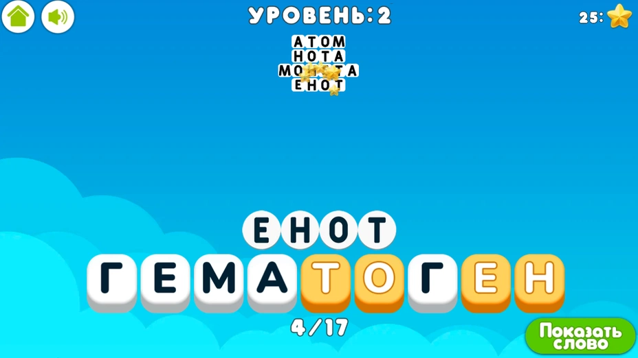 - 🔍 Используйте подсказки — если застряли, можно воспользоваться подсказкой, которая откроет одно из слов.