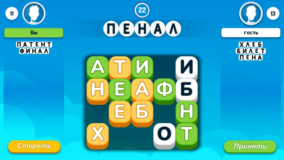 - ✍️ Составляйте слова — вводите найденные слова в специальное поле. Игра принимает только существующие в словаре варианты.
